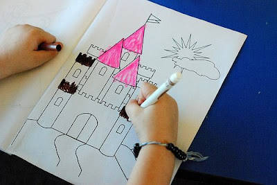Here's the funniest part of the story. She was following along and adapted the instructions for the craft out of a book we borrowed from the library. Midway through the afternoon...she comments in an off the cuff manner...."This book must've been published in the 80's or they wanted the kids/models to look like they wee in the 80's for some reason because the outfits are just horrible, Mom. They are all in bright blue, yellow, red you know.....and green."